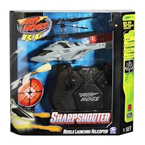 - Prepare for sky-high battles with the blue Air Hogs R/C Sharp Shooter Helicopter.^This awesome remote control chopper has built-in firing missile weapons to fire six missiles at your target at the touch of a button.^Fly Multiple Sharp Shooters in the Same Room with 2 Frequencies^With Steady Flight and Tail-Lock Technology, this 6.5 inches long Sharp Shooter can be piloted left, right, up and down with precision and it'll even hover in place. ^Included are 1 Sharp Shooter, 6 Missiles, 2 Targets, 1 Controller/Charger and 1 Instruction Sheet